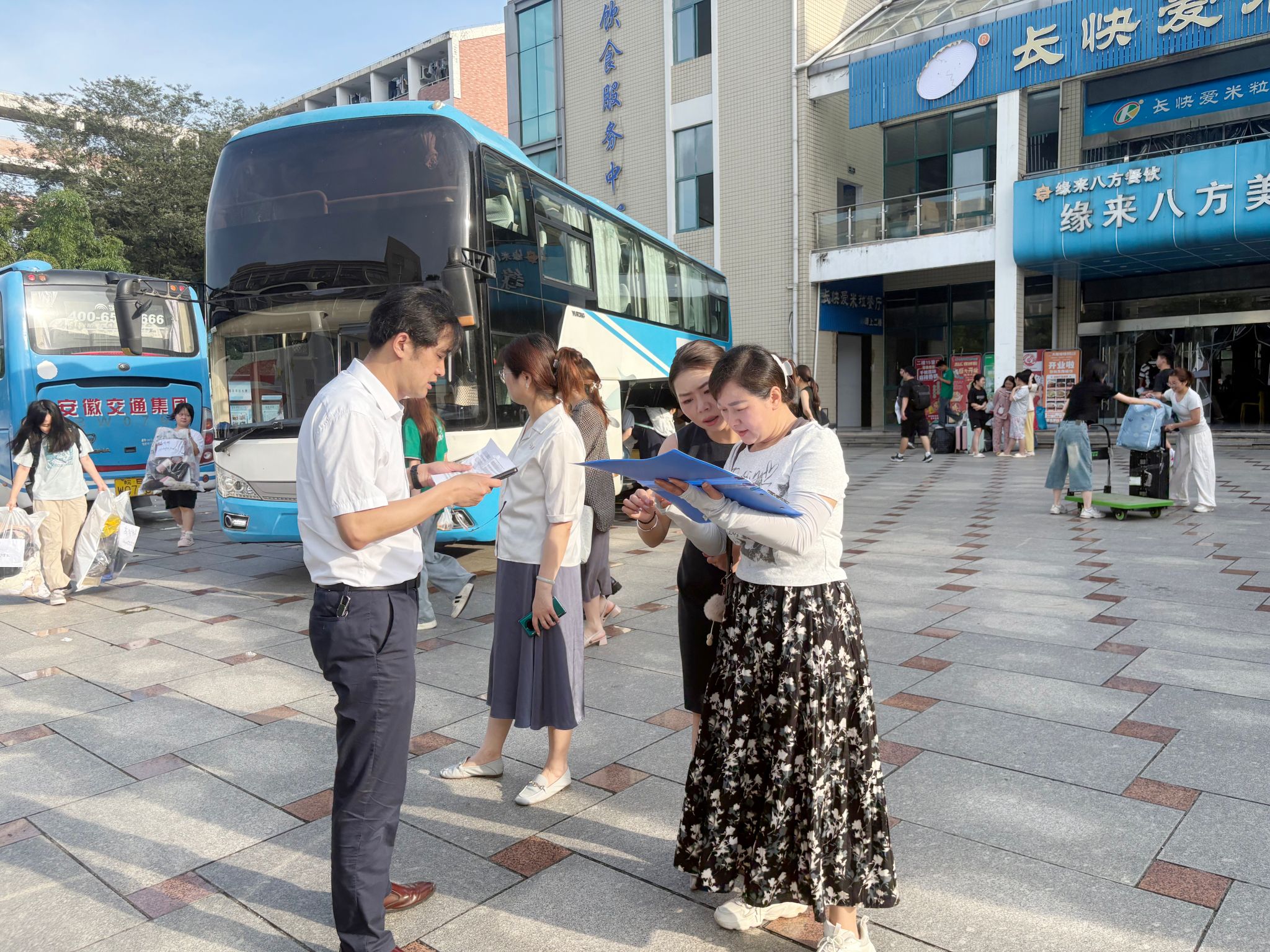 实习送点,保障学生安全出行。6月17日,学院组织跟车教师召开实习送点专项协调会,细化行车安全、应急处理等保障措施。18日清晨,学院领导与辅导员团队提前到岗,现场指挥行李搬运、车辆调度等工作,从6:30开始,19辆送点专车有序出发,满载学子奔赴上海、连云港、南京等各实习基地。